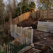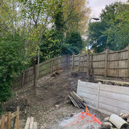 Clear site, take down old garage, install new fencing , gateways, renew rockery, new sleeper edge and golden gravel walkways.