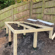 Decking- timber or composite, fencing, gate installation, raised beds, pergolas, rose arches, shed bases, paver pathways, turfed lawns, pond edge walkways etc